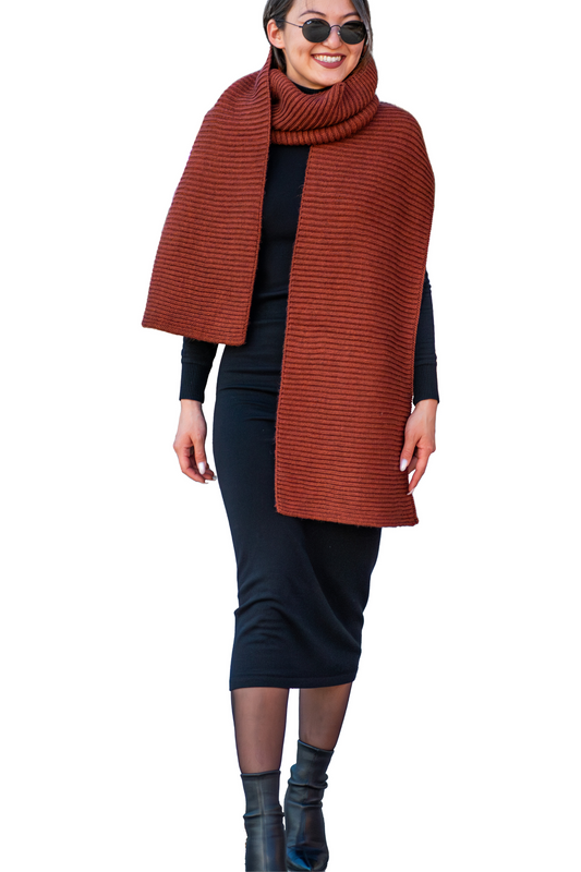 Women Oversized Long Knitted Scarf | Copper Brown, Beige